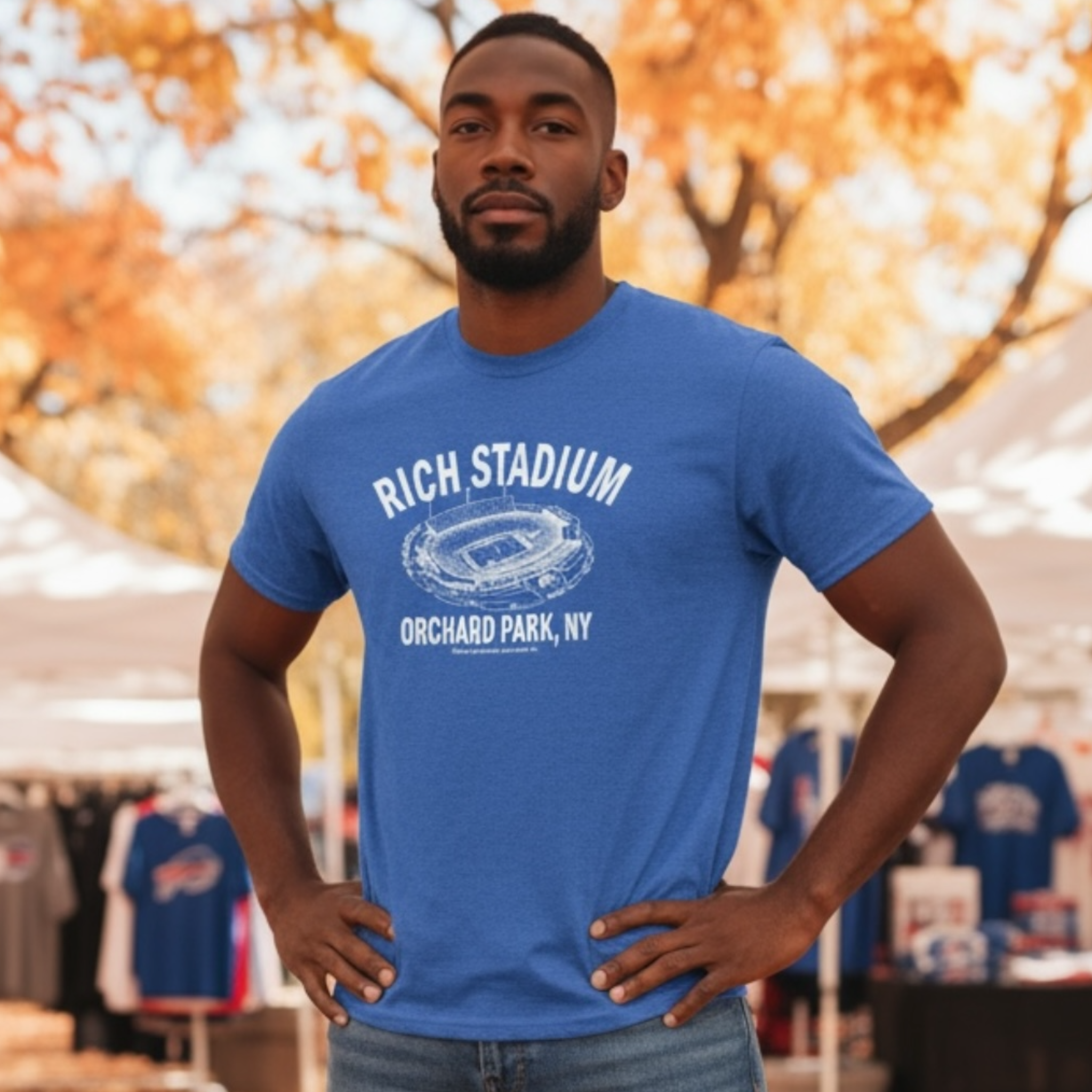 This vintage-inspired tee pays tribute to the home of Buffalo football. From the roaring crowds to the freezing seats, and the unforgettable Sundays that defined an era, Rich Stadium is more than a place—it’s a feeling.